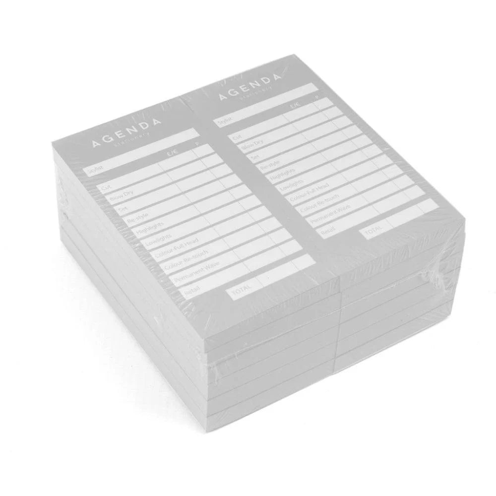 Document every appointment detail with Agenda Check Pads, they're the essential tool for tracking client visits, pricing information, and salon records all in one place.