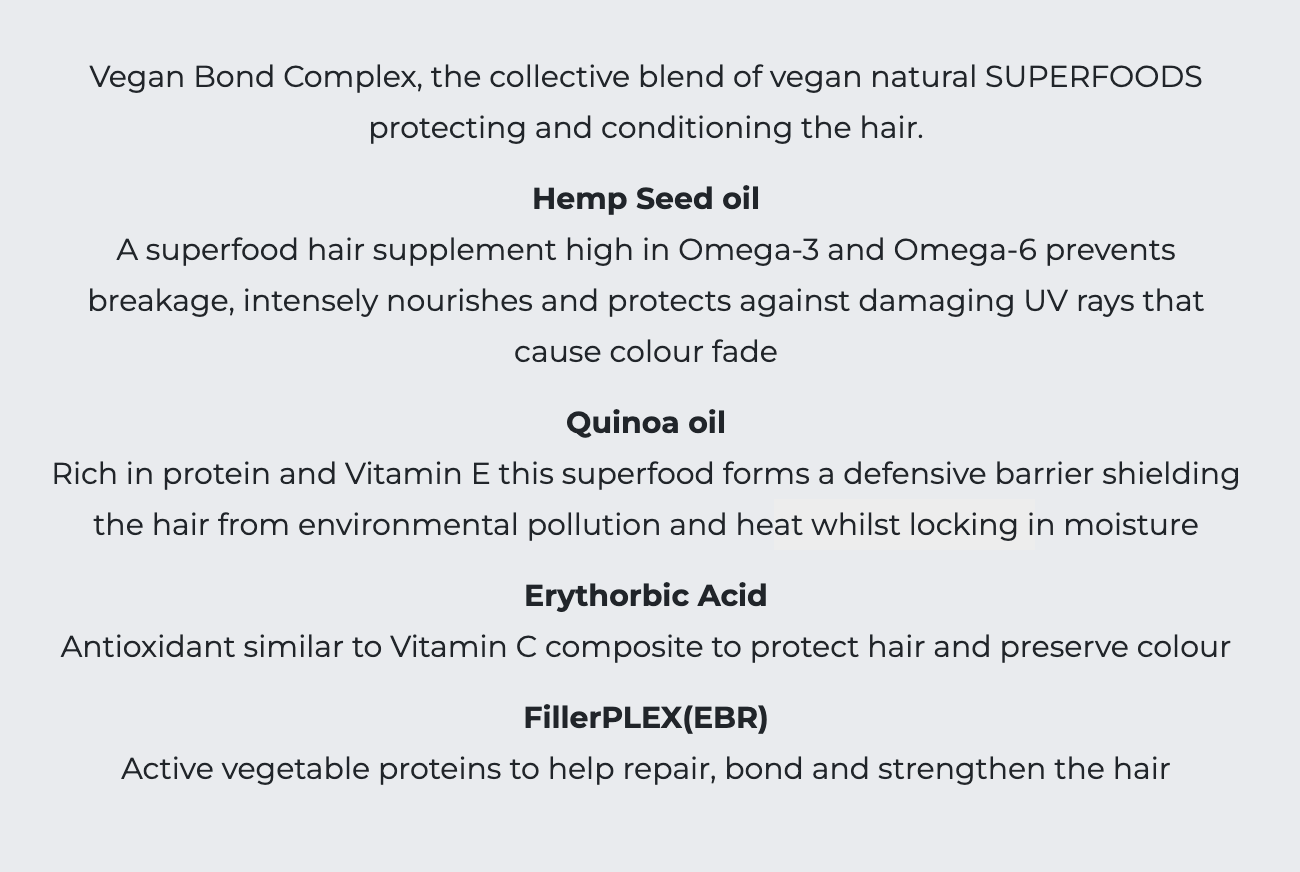 This gentle formula contains Vegan Bond Complex, which is a collective blend of vegan superfoods that protect and condition the hair.